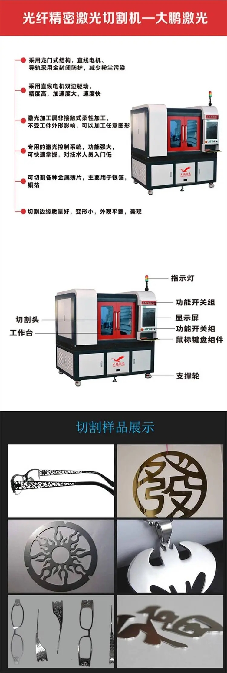 大鹏激光小幅面高精密激光切割机首饰铜银箔眼镜双驱直线打孔
