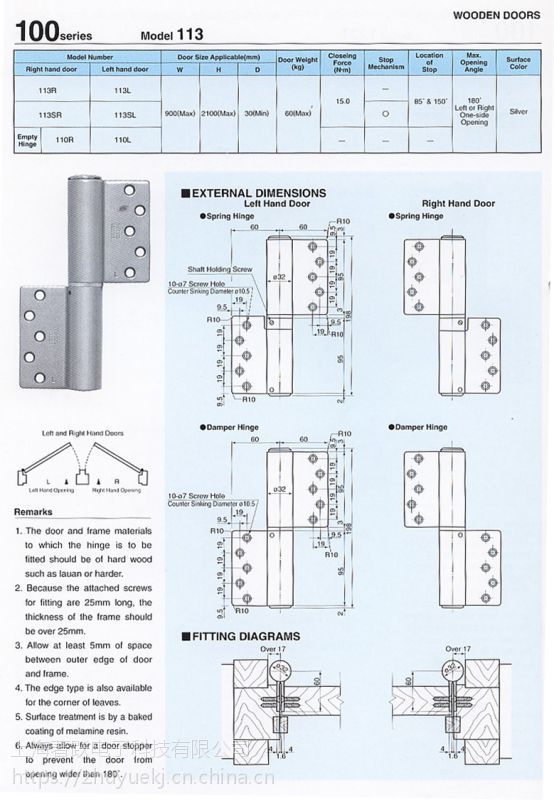 适用于:木制门、轻型铝合金门、轻型钢制门