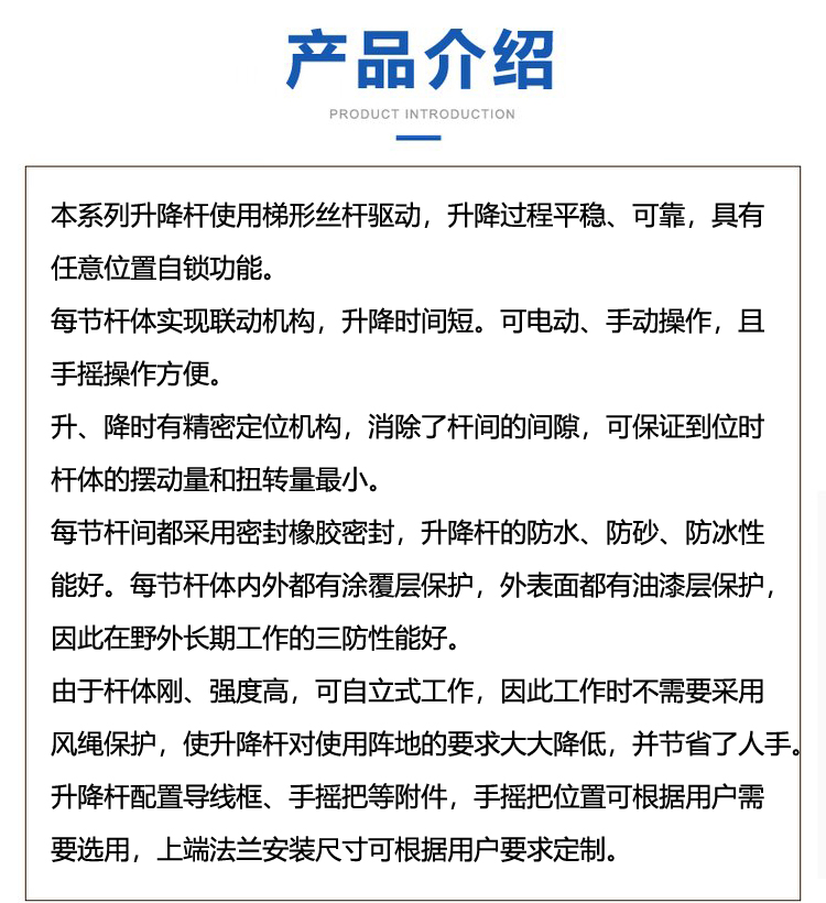 电动升降杆通用型汽车载升降天线监控照明避雷针支架