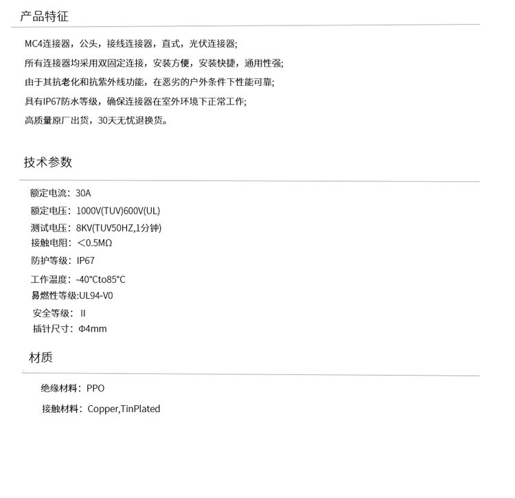 额定电压 | 1000V (TUV) 600V (UL) | ||