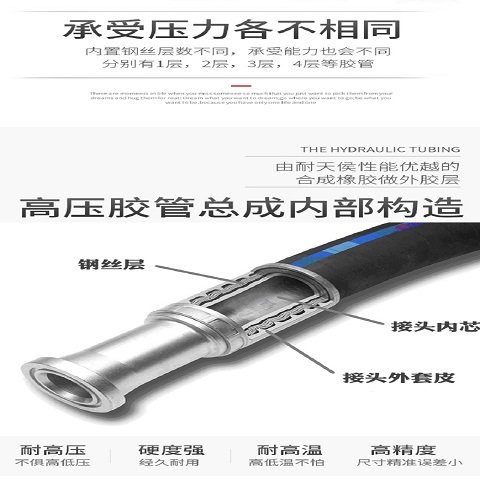 高压油管液压总成钢丝编织橡胶管耐高压高温软管挖掘机管螺纹定做
