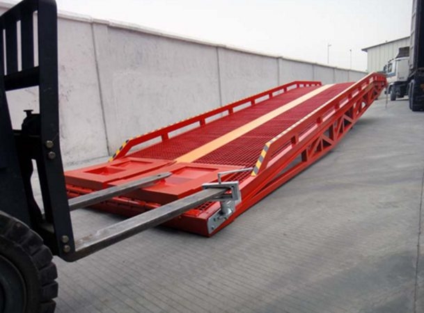 常州移动式登车桥在常州物流工业现场无装卸货平台或需要流动装卸货物的场所派上了用场。如果物流现场没有装卸货平台,作为补救措施,移动式登车桥是非常适用的方案之一,移动式登车桥相当于一个移动的钢结斜坡,叉车同样能直接驶入卡车车厢内部进行批量装卸作业。只需单人操作,不需动力电源,即可实现货物的安全快速装卸。