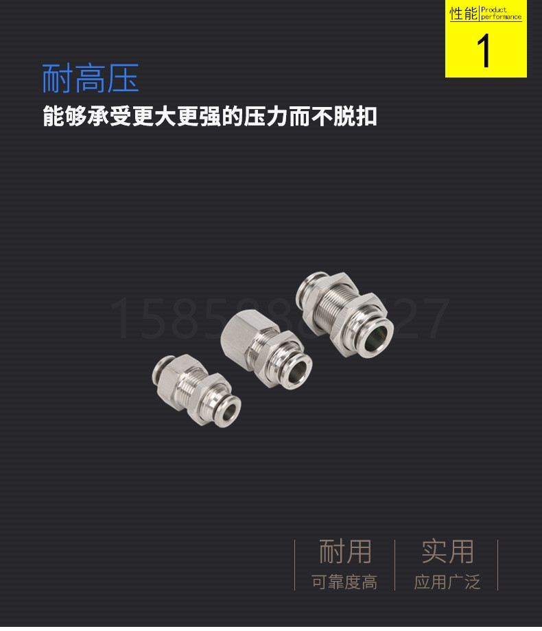 不锈钢快插穿板直通特点,这种管接头使用轻巧灵便、干净利索、广泛应用于液压、气动和润滑流体输送等管路系统中,在急需经常拆装的管路中尤为适用