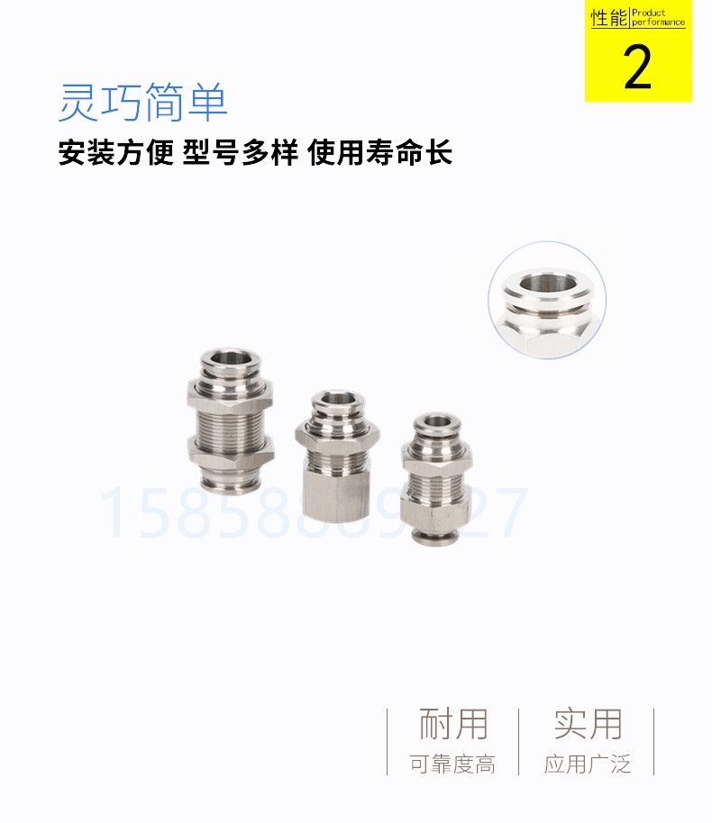 不锈钢快插穿板直通适用介质:气体、水、油、及一些腐蚀性液体