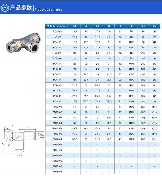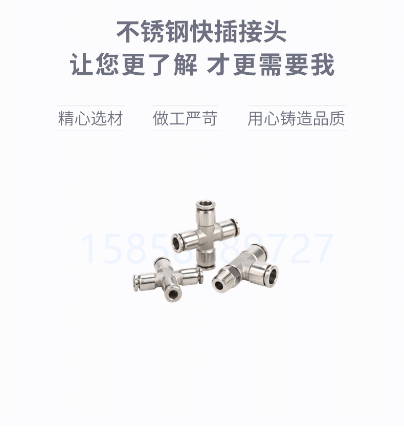 不锈钢快插侧螺纹三通主要特性应用 只需“即插即用” 可靠连接 内附密封轻松选择适用的接头。快插/螺纹接头为每一种连接都提供了牢固的解决方案。便捷的快插/螺纹接头系统包括了超过1000种的标准型和功能接头。接头上的不锈钢夹爪可牢牢固定住气缸而不会伤及气管表面。并可安全吸收振动和气压涌动。按下蓝色的解卸环。出于便利性考虑相对应的气管外径标注于解卸环上。标准气管适合用于压缩空气和真空。快插/螺纹接头所有的铜质部件都经镀镍因此具有非常好的耐腐蚀性。锥形ISO R螺纹带有自密封的PTFE涂层可最多连续使用五次而无需附加的密封元件。可360°重新定位360°可旋转带滚珠轴承在装配时就已校准。使用时能补偿气管移动。最高允许500 rpm的旋转速度。哪个接头配哪个螺纹公制平行螺纹G平行螺纹符合DIN ISO 228-1R锥形螺纹符合DIN 2999-1和ISO 7/1?柱状公制螺纹与G螺纹相当?通过密封圈密封?前端面密封?螺纹短?安装深度恒定?密封圈可替换?前端面密封?由于密封圈可替换故可多次使用?自密封螺纹?通过涂层螺纹密封?无需额外的密封表面?密封圈表面无需槽口。安装尺寸更紧凑?最多可使用五次,而无需附加的密封元件。