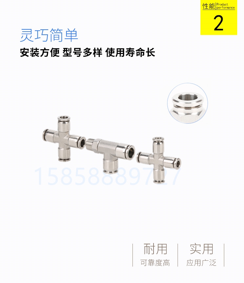 不锈钢Y型螺纹快插三通采用世界先进的推卡技术,因而装拆简便、快速,缩短了停机时间,大大提高了生产工效。不锈钢(或高压碳素钢、铜)材料的运用及超强度高合成材料的密封效果,使产品具备压力高、环境适应性强、耐腐蚀、高密封性好等优特性。双自封式两端截流,可避免液体介质跑、冒、滴、漏,节约能源、优化环境。