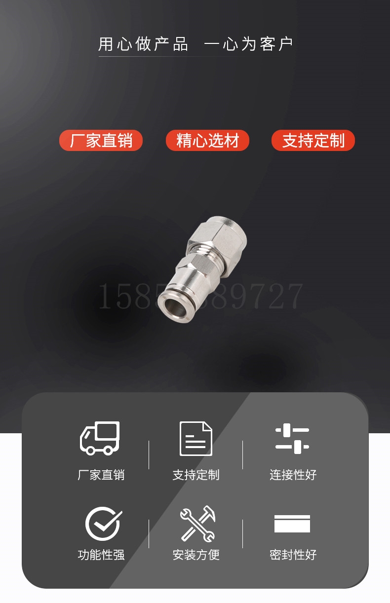 不锈钢卡套快插直通主要特性应用 只需“即插即用” 可靠连接 内附密封轻松选择适用的接头。广泛使用于炼油、化工、石油、天然气、食品、仪器仪表等: