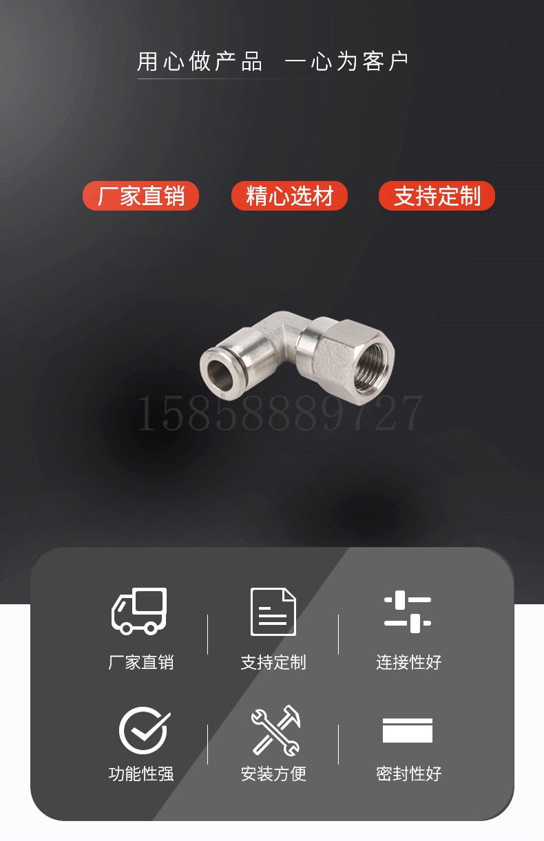 不锈钢L型快插内丝弯头具有连接牢靠、耐压能力高、密封性和反复性好、安装检修方便、工作安全可靠等特点