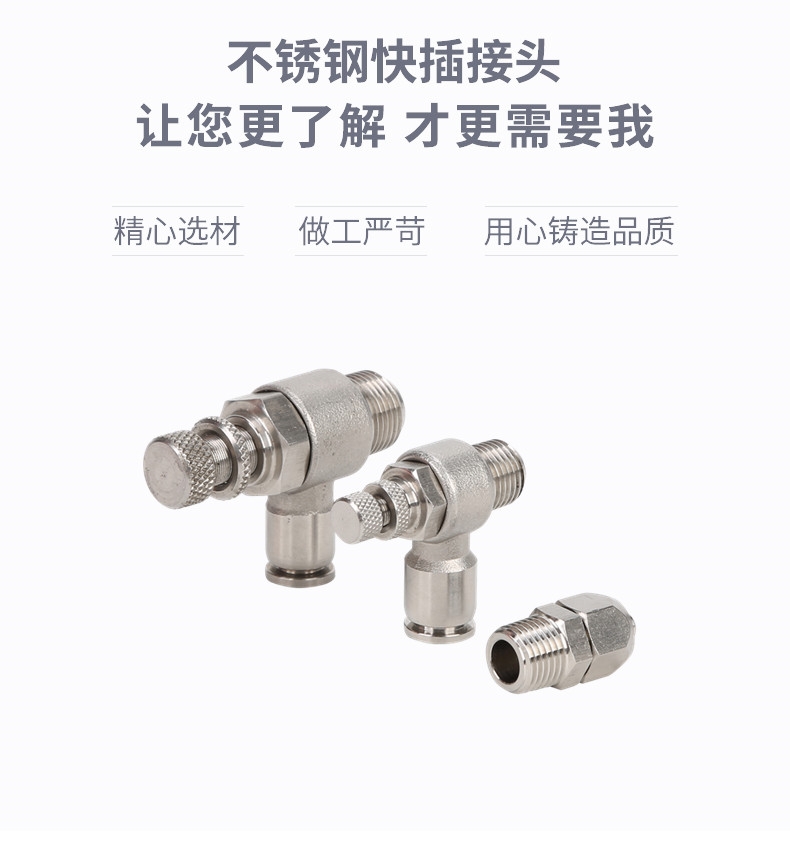 不锈钢节流阀气管不锈钢快插式手阀限流阀气动快速调节阀304不锈钢快插式气动节流阀 全不锈钢304快速接头快插接头ASL可调节节流阀ASL8-01*02*03*04
