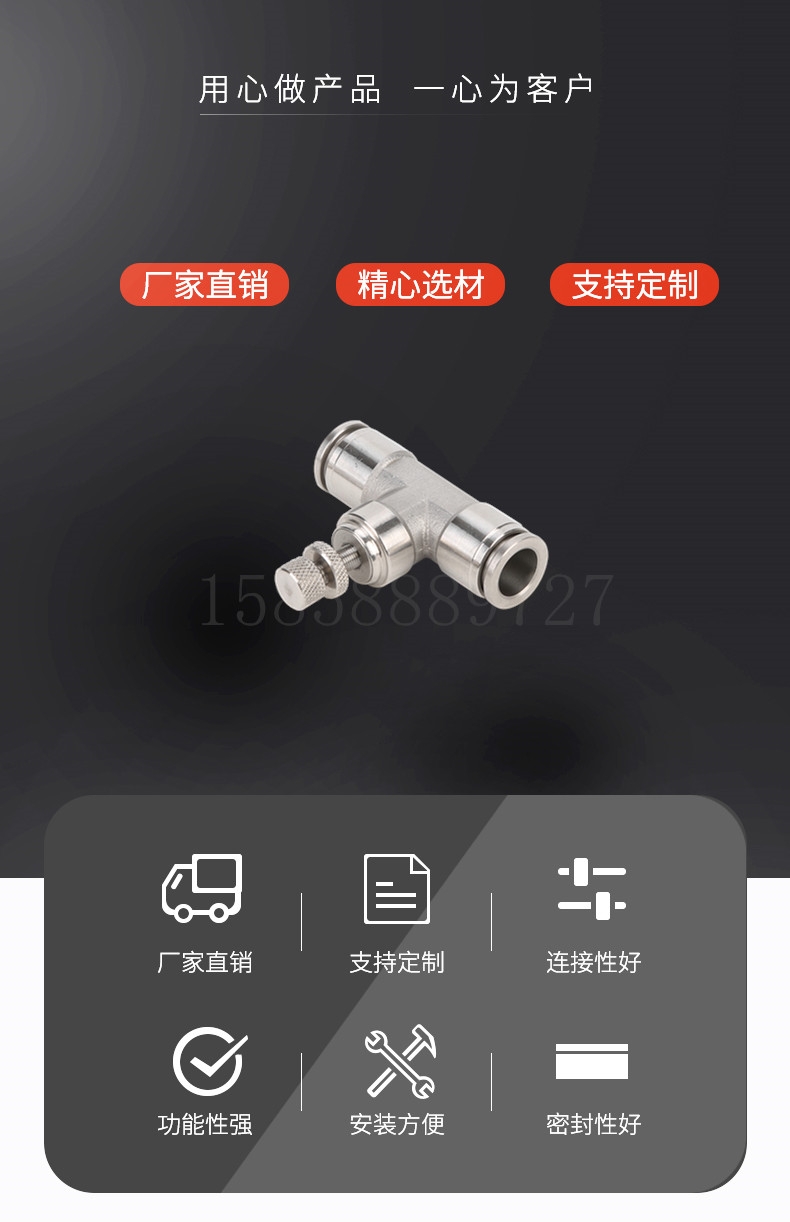选用优质不锈钢304316材料,为用于气压配管的接触式管连接口,根据使用者的情况,可用于多种用途。