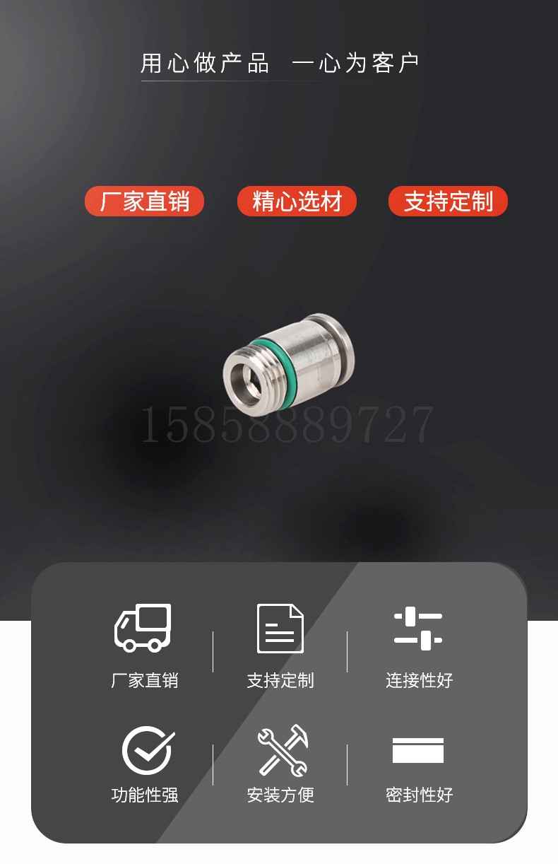 1.气管切断后除去毛刺,将气管一端插入接头插口内(一定要插到底部),即可达到牢固的连接和密封。