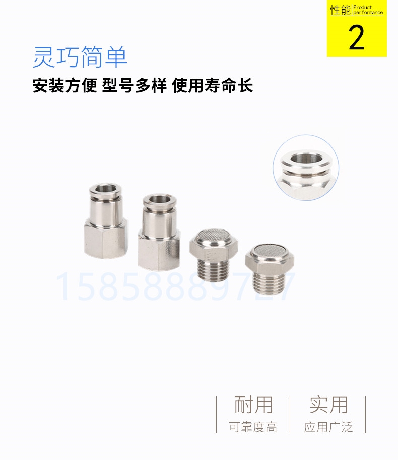 2.拆卸气管时,用拇指将接头卡套压进,轻轻用力即可将 气管拔出3.气管反复多次拔出后。应剪去端部磨损部分。修平后继续使用。4.直角、三通、四通等终端管接头。安装后,仅需旋转接头体,即可调整接头的接管方向