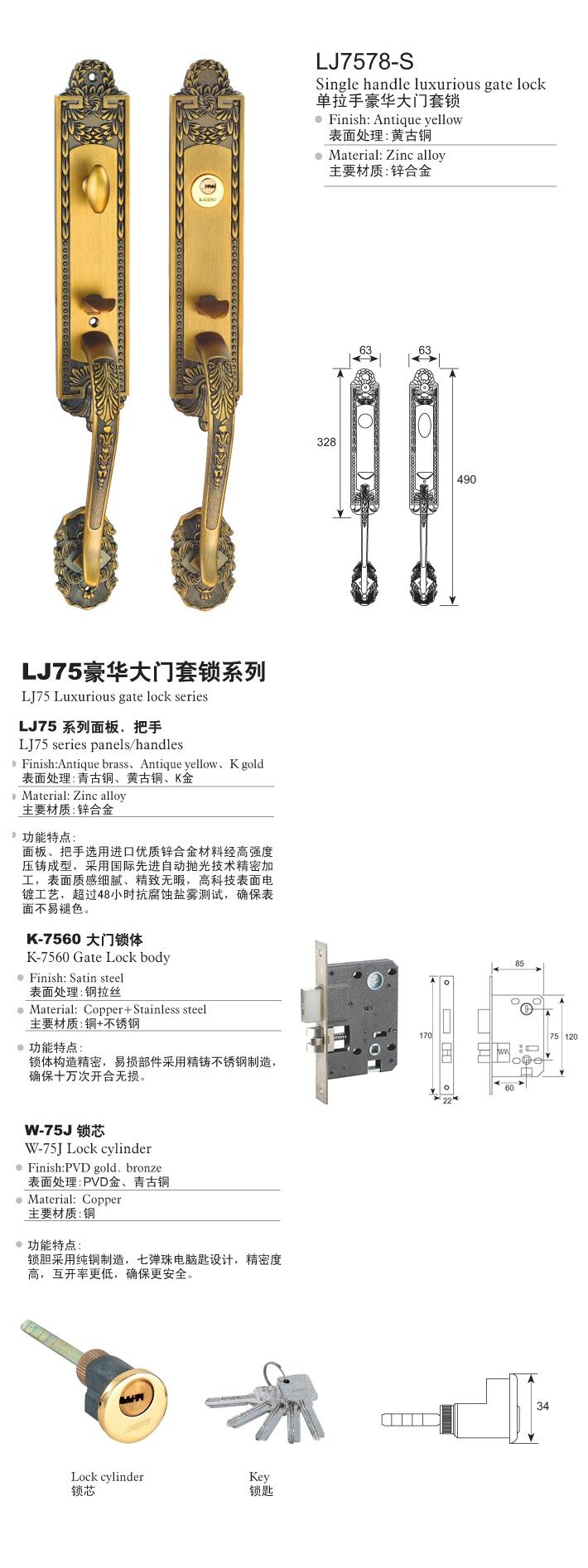 锁芯锁匙纯铜制造,国际电脑双排上下十珠设计,防钻防撬,安全无比,互开率超过一万把。采用国际先进自动抛光技术精密加工,表面质感细腻,精致无暇。锁体构造精密,易损部件采用精铸不锈钢制造,确保十万次开合无损,三重保险设计带防插卡功能,安全可靠。快速逃生、通道互换功能设计更实用。适合高端装修的用户