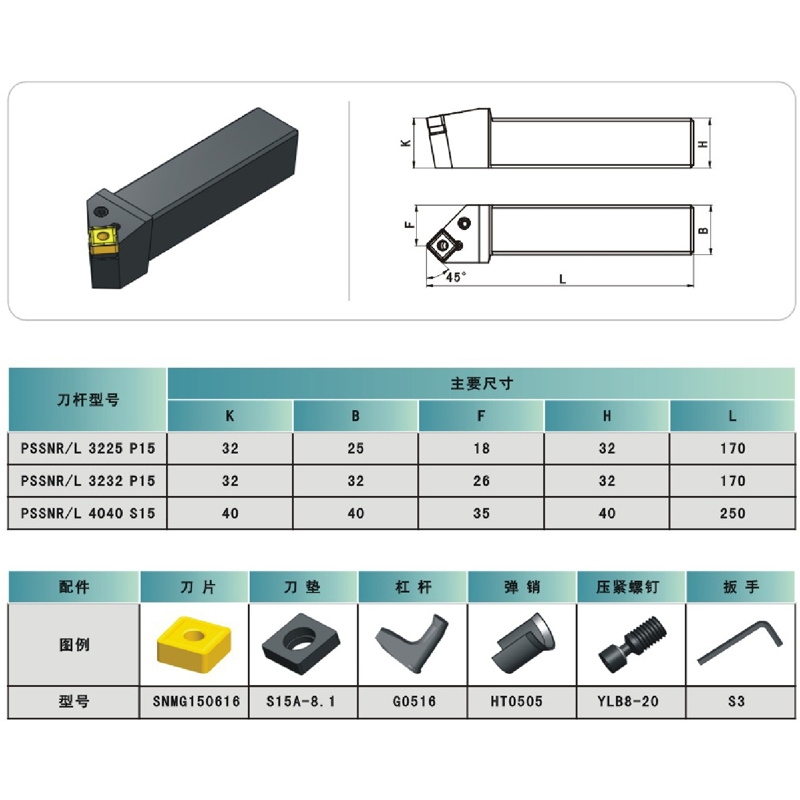 石油管螺纹刀具45度倒角刀杆PSSNR 4040 S15