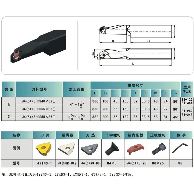 石油管螺纹刀具钻杆Ⅰ型内螺纹刀片用方柄刀杆J4(5)N3-CS55×36Ⅰ
