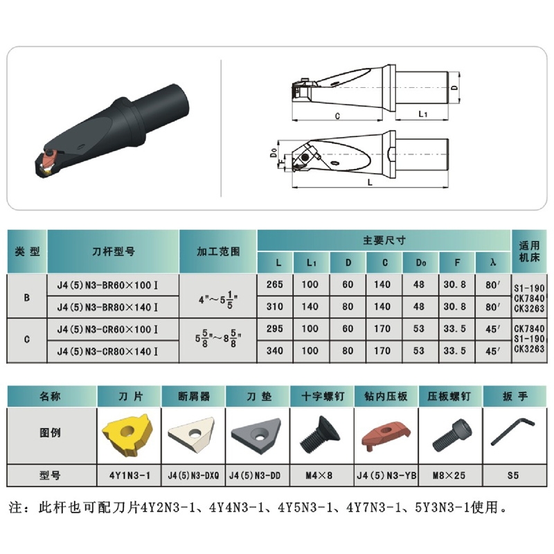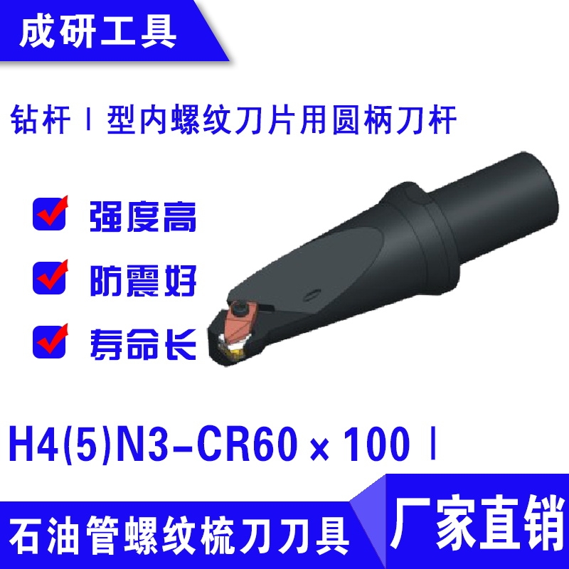 石油管螺纹刀具钻杆Ⅰ型内螺纹刀片用圆柄刀杆H4(5)N3-CR60×100Ⅰ