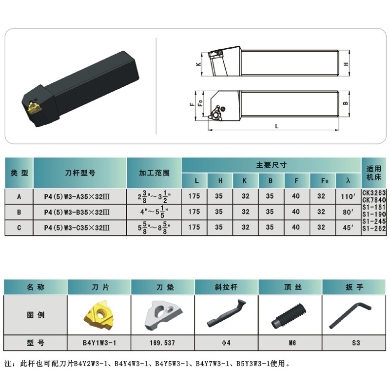 石油管螺纹刀具钻杆Ⅲ型外螺纹刀片用刀杆P4(5)W3-B35×32Ⅲ