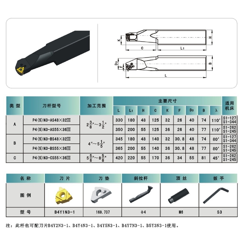 石油管螺纹刀具钻杆Ⅲ型内螺纹刀片用方柄刀杆P4(5)N3-BS55×36Ⅲ