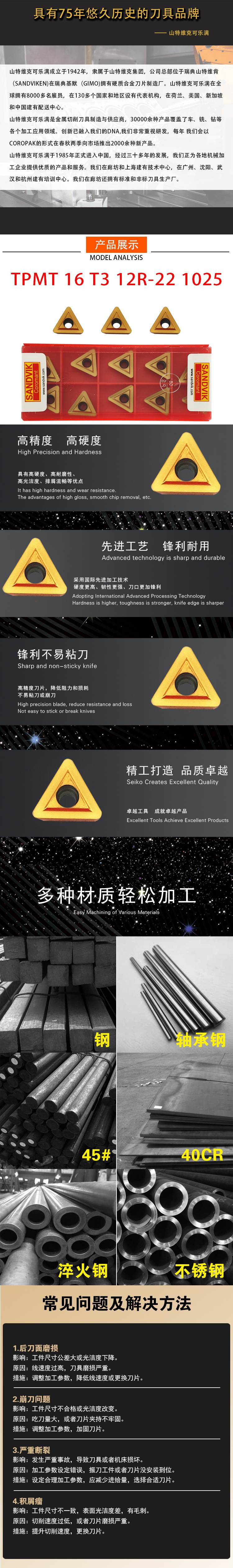 深孔钻全系列山特维克TPMT 16 T3 12R-22 1025