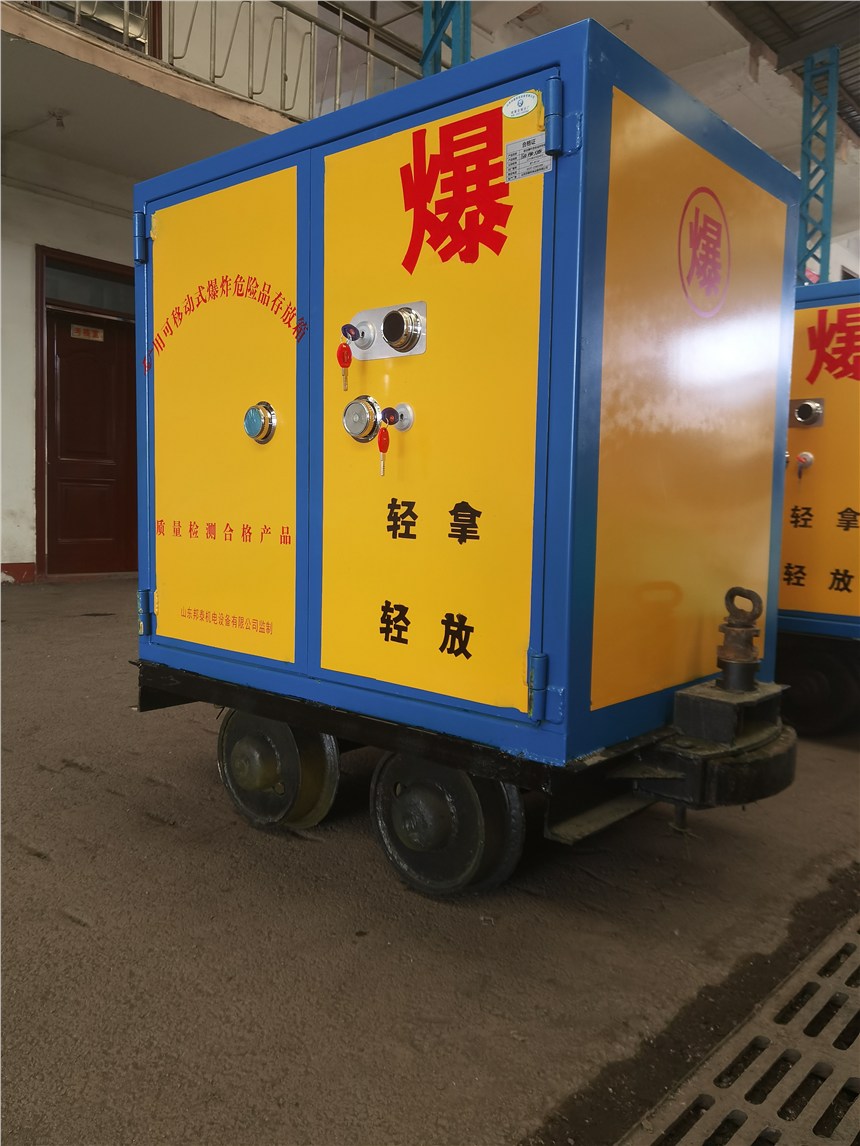 首先,它的存放柜体材质是由防爆钢板焊接成型的,内部也做了绝缘处理,有一层内衬木板和抗震防静电的毡垫,而钢板厚度至少达到6mm厚,柜体结实不易变形,具有抗压,防静电和防爆的特点。其次,它的材料车部分按照不同矿山轨距,可选择600mm,900mm,762mm几种,并带有煤安或者矿安标识。