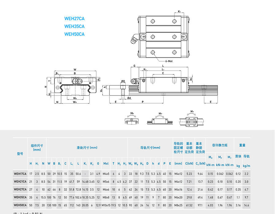 WEH27CA上银HIWIN滑块规格参数 直线导轨现货供应