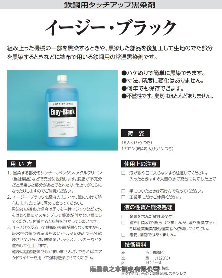 30秒で反応する塗布用黒染剤。HRC60までの熱処理済みの特殊鋼も黒染できます(原液使用)。
