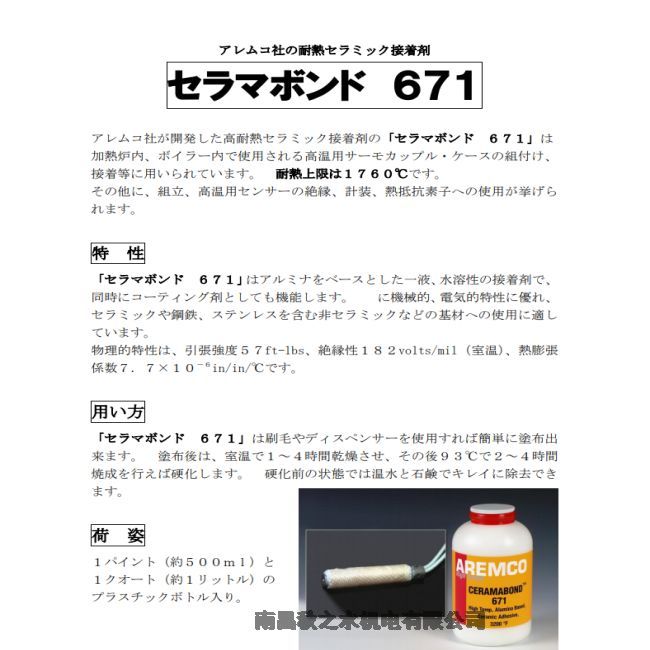 日本AUDECオーデック耐熱接着剤セラマボンド 671