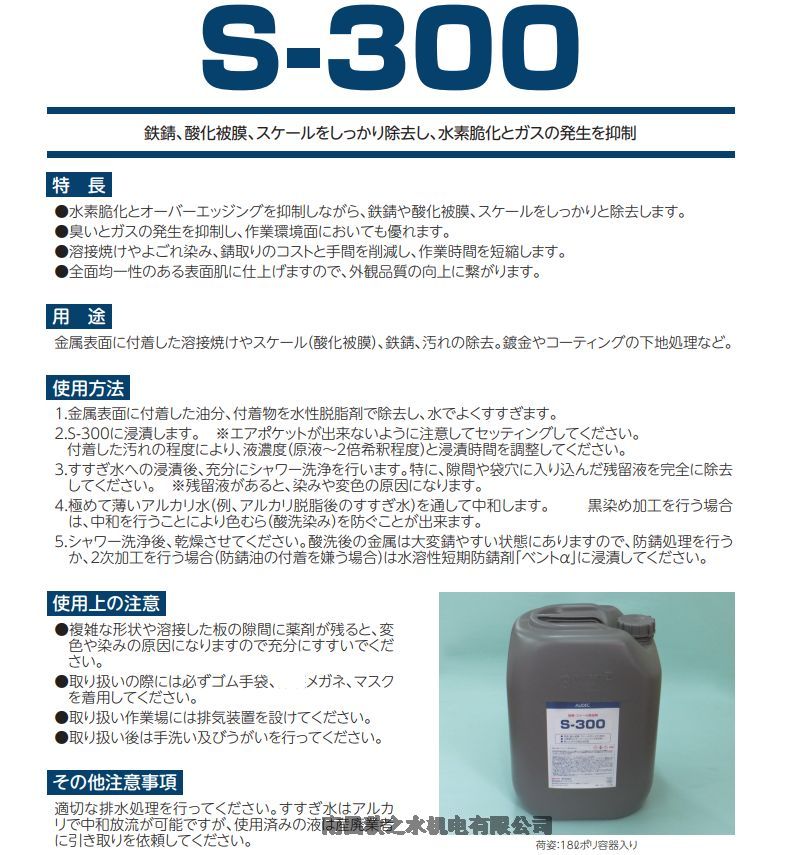 金属表面に付着した溶接焼けやスケール(酸化被膜)、鉄錆等を除去する普通物(医薬用劇物でない)の錆び、スケール除去剤です。