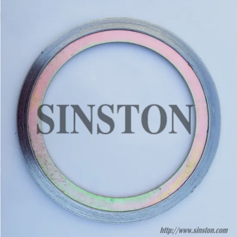 金属缠绕垫片是目前应用广泛的一种密封垫片,为半金属密合垫中回弹性 垫片,由V形或W形薄钢带与各种填充料交替缠绕而成,能耐高温、高压和适应超低温或真空下的条件使用,通过改变垫片的材料组合,可解决各种介质对垫片的化学腐蚀问题,其结构密度可依据不同的锁紧力要求来制作,为加强主体和准确定位,缠绕垫片设有金属内加强环和外定位环,利用内外钢环来控制其 压紧度,对垫片接触的法兰密封面的表面精度要求不高。