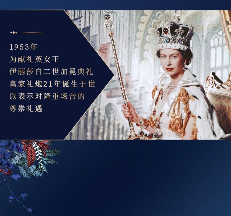 皇家礼炮,以英国皇家海军的礼炮命名,代表着对皇室的敬意和最,高礼遇。这款21年的苏格兰威士忌,经过精心酿造,呈现出深沉而迷人的色泽。在瓶身之间,您能感受到那种皇家特有的沉稳与庄重,彷佛在诉说着千年的历史与传承。