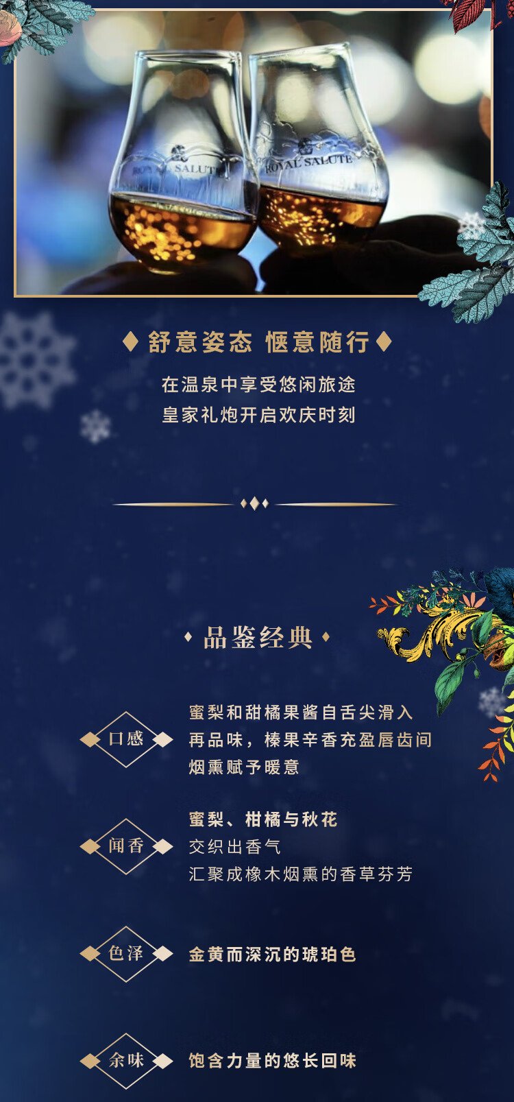 皇家礼炮(Royal Salute)21年苏格兰威士忌洋酒。这款精致的烈酒,承载着皇家的优雅与尊贵,为您献上一份独特的味觉盛宴。