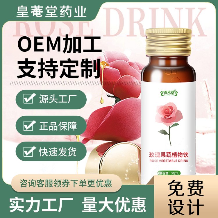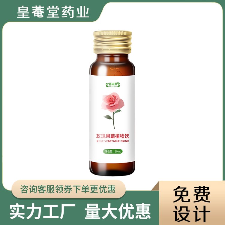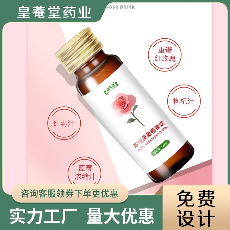 鲁南口服液饮代工厂委托生产玫瑰果蔬植物饮50ml玻璃瓶装饮品