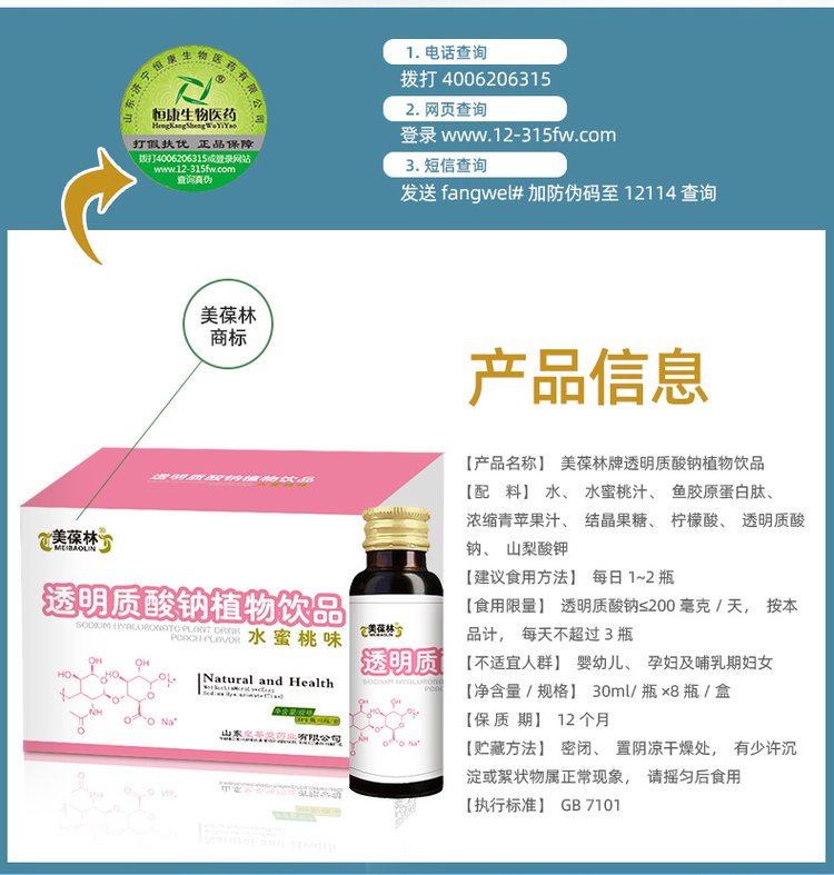 配料 | 水、水蜜桃汁、鱼胶原蛋白肽等 | ||