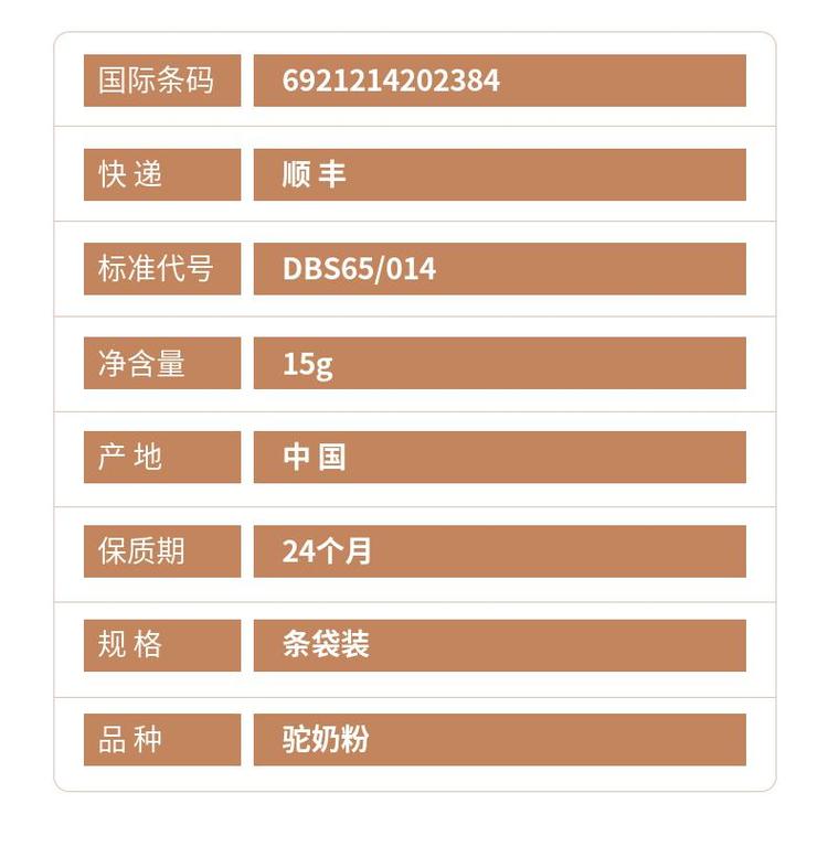 驼乳配方驼奶粉 国际条码6921214202384 顺丰 标准代号DBS65/014 品牌 | 其他 | ||
