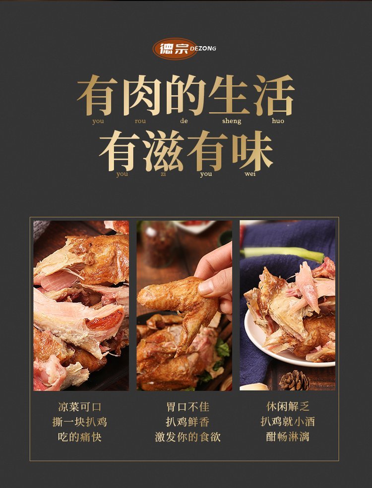 德州德宗扒鸡采用真空包装,开袋即食就可以,也可以使用微波炉稍微加热一下或用锅蒸一下,出锅之后的扒鸡热乎乎、油嘟嘟、香喷喷,再配上啤酒更是相得益彰!??