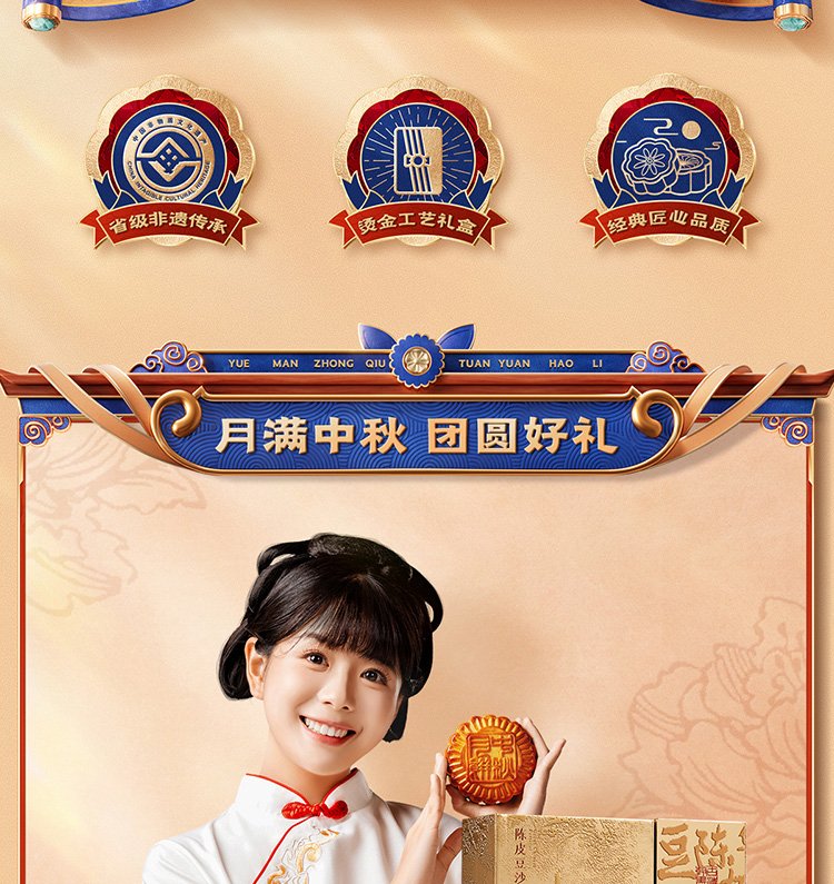 600G陈皮豆沙华美月饼食材好料公司员工中秋节礼盒定制