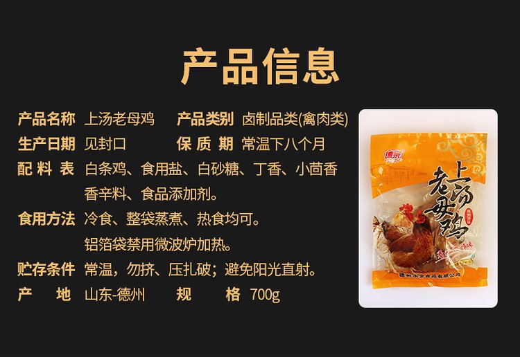 配料表 | 白条鸡、食用盐、白砂糖、丁香、小茴香香辛料、食品添加剂 | ||