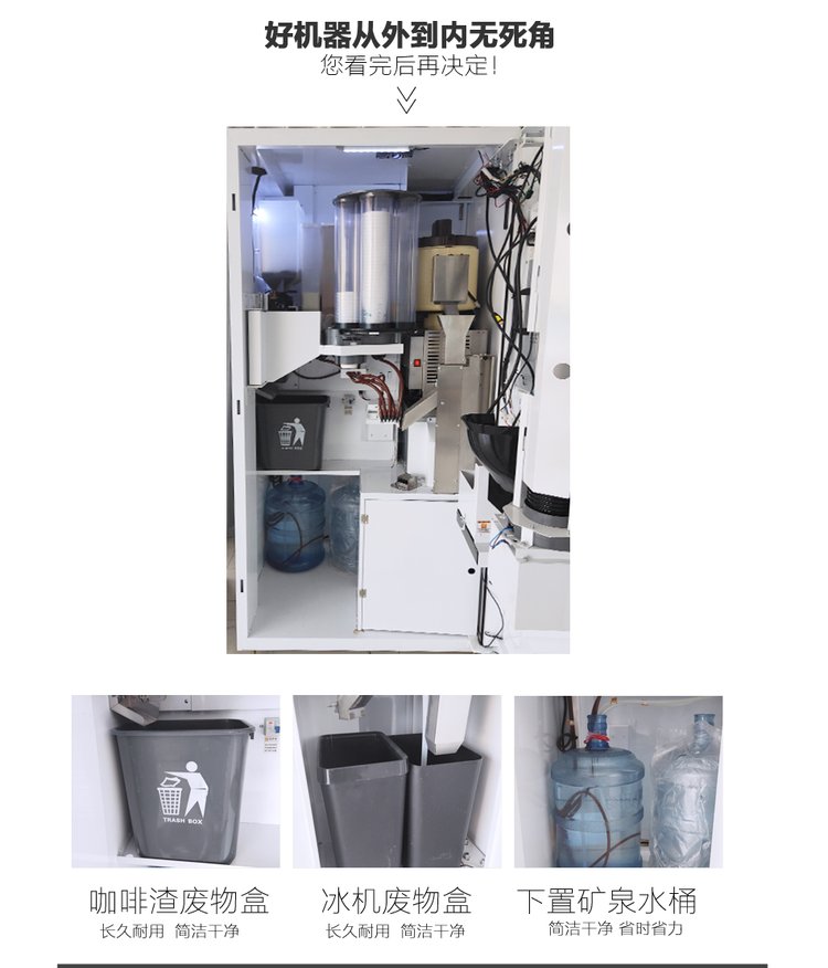 以勒无人咖啡机大容量冷热一体自助研发自动落杯(12盎司)/自动 环境要求 | 室内(高温38℃、低温2℃) | ||