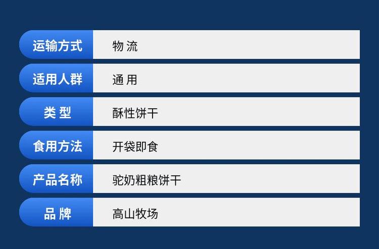 产品名称 | 驼奶粗粮饼干 | ||