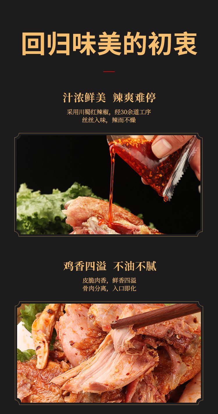 配料表 | 白条鸡、食用盐、香辛料、食品添加剂、食用香精 | ||