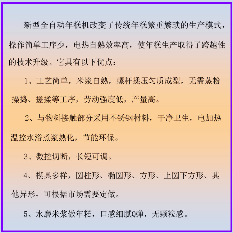 用途范围 | 生产加工年糕饵块粑碱粑米豆腐粉利等 | ||