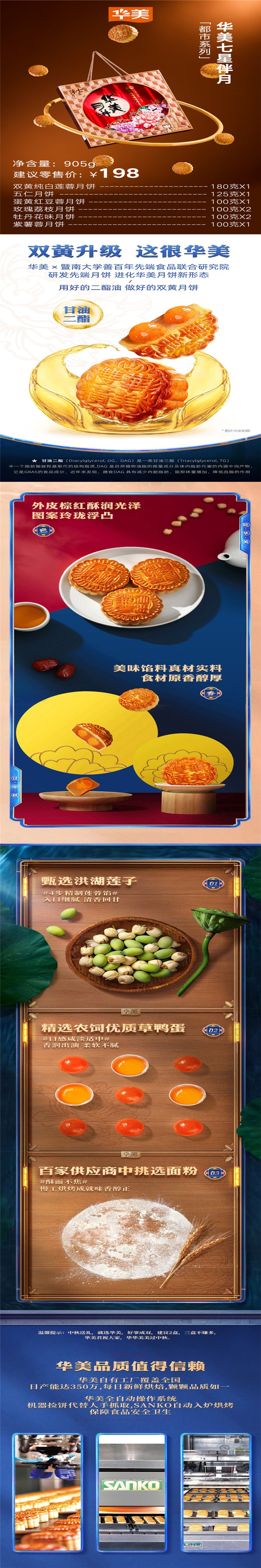 原料与配料 | 蛋黄、莲蓉、白沙糖、花生油、小麦粉、植物油、水等 | ||