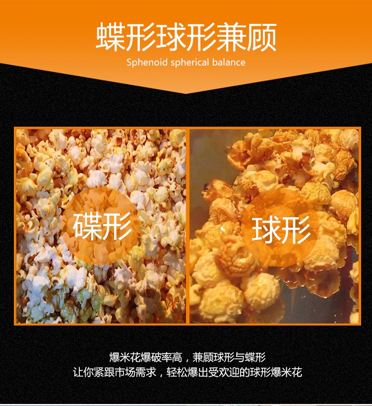 四、独家采用美国进口温控系统,大大提高了稳定性及控温效果和使用寿命,爆的米花更大且不易焦锅.