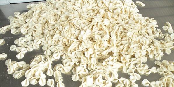 蝴蝶面,蝴蝶面的面质以两侧较为细柔,中间较厚实。面身造型非常容易承裹沾附酱汁,因此适合搭配各式不同形态的面酱。蝴蝶面及异形面片模具均可根据企业现有机器型号加工定制,提高产量,节约能源。