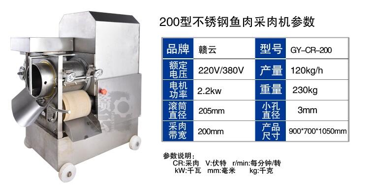 我们通过几张图片来了解一下赣云牌200型全不锈钢鱼肉采取机构造: