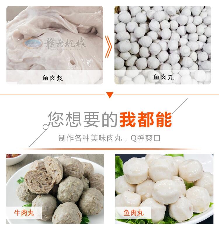肉丸好吃,正是因为肉丸是一种非常讲究加工工艺的美食,我们市面上常见的肉丸有猪肉丸、牛肉丸、鱼丸、牛筋丸等等,最近抖音上最火的莫过于潮汕牛肉丸了。每种肉丸都有他自己的独特的口味和加工工艺,比如猪肉丸,猪肉丸的口感吃起来比较爽脆而又不失弹性,鱼丸呢主要以鲜美出名,好的鱼丸鲜甜而不腥,鱼丸有的口感比较有弹性有的则比较水嫩;而潮汕牛肉丸、牛静丸呢则以丸子口感Q弹而备受消费者喜爱。每种口感的肉丸加工工艺不同,用的肉丸打浆机其实是不一样的,肉丸打浆机有分为传统加冰块冷却类的高速打浆机和慢速打浆机、调速肉丸打浆机,也有分制冷式的肉丸打浆机。