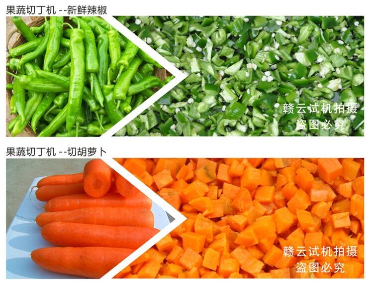 以前繁琐的人工加工的工序随着时代的发展都逐步的被人工所代替在这里小编要和大家分享的是切果蔬丁的机器,果蔬丁也就是果蔬颗粒,这种专门加工果蔬颗粒的机子也就是果蔬专业切丁机,常用于加工土豆丁、萝卜丁、辣椒丁、黄瓜丁、包菜丁等等。