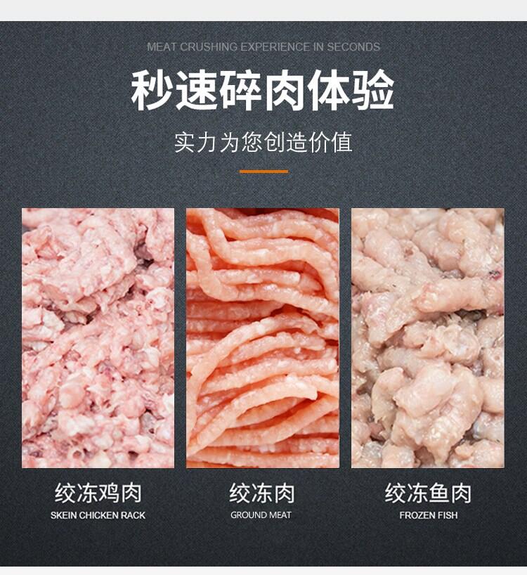 看个头就知道这款机器不小,这款冻肉绞肉机,常用于绞冻牛油、绞冻牛肉、绞冻肉、绞鸡胸肉、绞猪肺等等。很多做牛肉丸的客户都称这台机器为绞冻牛肉的机器,绞冻牛油的机器。这款机器操作简单,把冻肉放入到绞肉机入料口,就可以直接把冻肉绞碎成肉末。