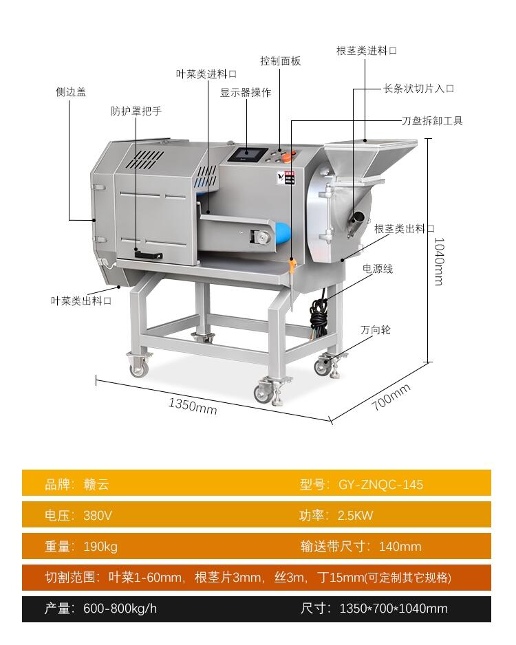 6.功能:该机械适用于多种蔬菜切条、切丝、切段、切片