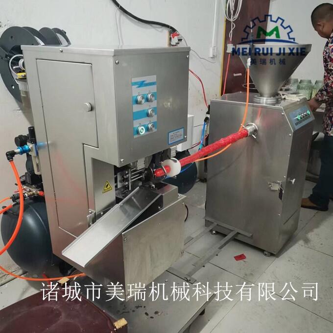 香肠灌肠机 小型火腿肠全套生产灌肠设备价格成型后的火腿肠是需要蒸煮才可以的,就需要配套蒸箱来进行使用了,蒸熟后是可以直接食用的,所以说老人和孩子是非常的适合食用的,而且机器适合食品厂加工使用也更加的适合门店或者市场用等等的,我们公司可给客户提供技术支持等的,可放心采购使用。
